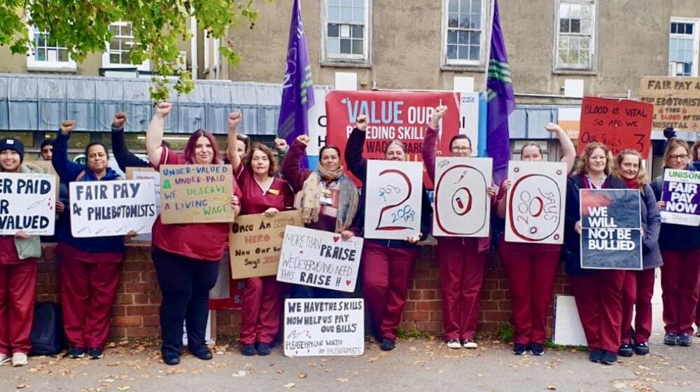 With the solidarity of workers and their union branches across the UK, phlebotomists in Gloucester will win. When they do, will be a significant victory for all NHS staff, and a warning shot for employers everywhere: you will get away with underpaying no longer.