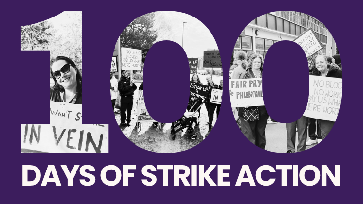 We’re still standing strong and we’re inviting trade unionists, colleagues and supporters to stand with us on our 100th day of action.