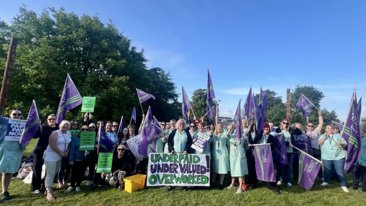Healthcare assistants, maternity care assistants, imaging care assistants and clinical support workers at University Hospitals Plymouth NHS Trust walked out at midnight on Wednesday 17 June for 72hours.